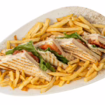 7,90€Ντομάτα, μπέικον, ζαμπόν, μαγιονέζα, gouda και πατάτες