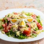 8,40€Ζυμαρικά με σάλτσα ντομάτας, ντοματίνια, τόνο, καλαμπόκι